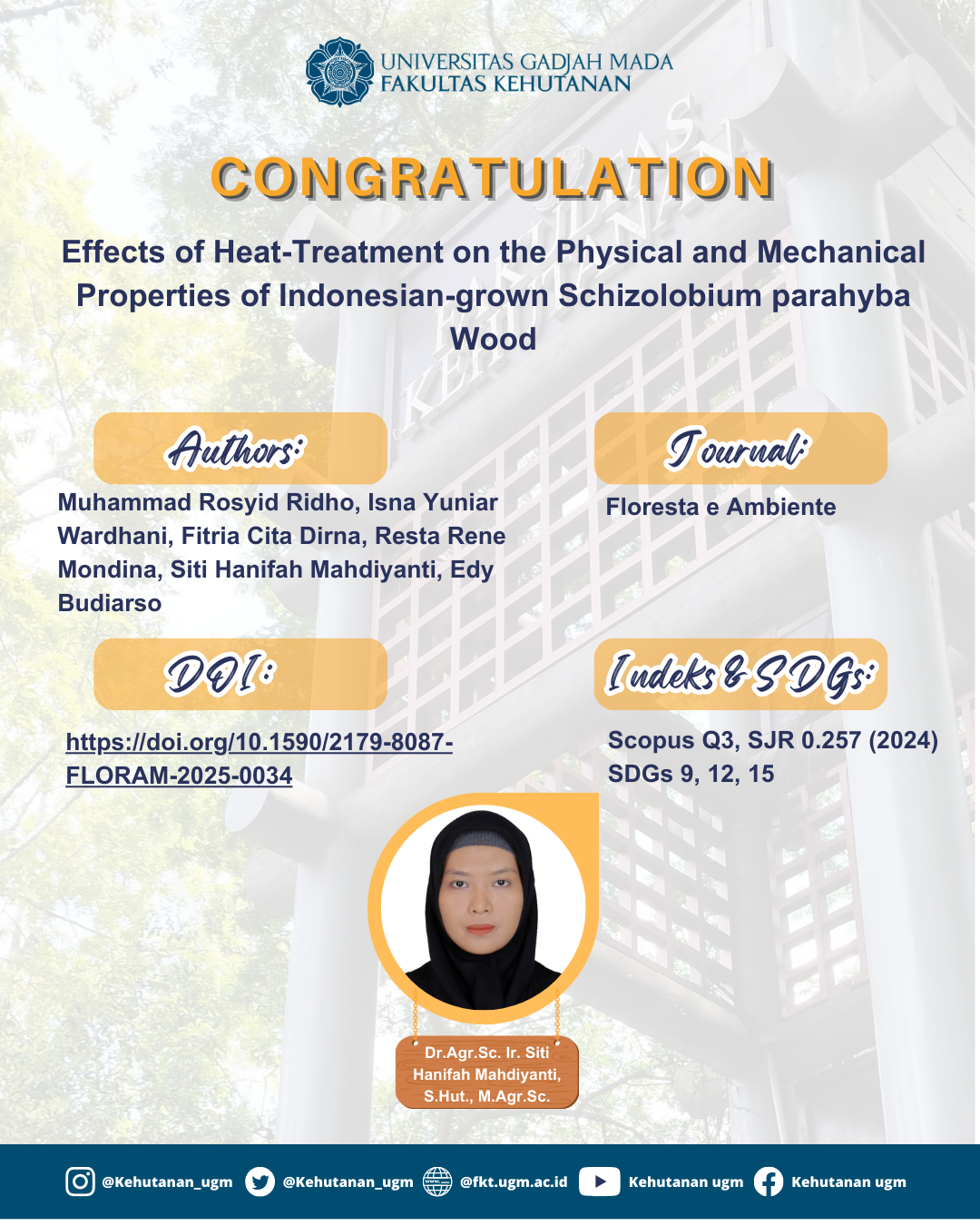 Schizolobium parahyba, a fast-growing tree species from South America, was introduced to Indonesia as a potential timber source. This study aimed to evaluate the effects of heat-treatment at 150-200 ºC (4h) on the physical and mechanical properties of S. parahyba wood. The results show that weight loss (WL) increased from 2.62 ± 0.29% at 150 ºC to 9.22 ± 0.86% at 190 ºC, while anti-swelling efficiency (ASE) increased from 3.44 ± 0.78% at 150 ºC to 29.84 ± 5.40 % at 180 ºC. Compressive strength parallel to grain (CP) increased from 37.99 ± 6.49 MPa (control) to 46.50 ± 5.52 MPa at 170 ºC but declined at higher temperatures. Meanwhile, static bending strength and compressive strength perpendicular to grain (CT) decreased at ≥180 ºC. Overall, moderate heat-treatment at 170 and 180 ºC enhanced dimensional stability and improved CP, whereas higher temperatures (≥180 ºC) caused substantial weight and strength losses.