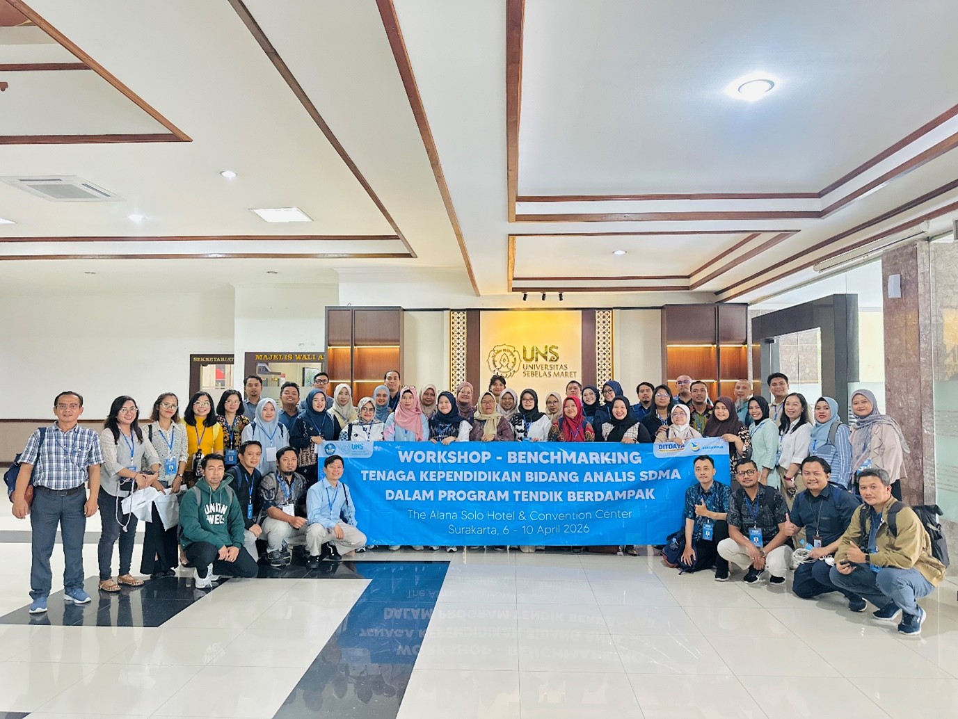 Pada hari berikutnya, peserta diajak melakukan benchmarking langsung ke kampus Universitas Sebelas Maret untuk mengamati praktik pengelolaan SDM secara nyata di lingkungan perguruan tinggi. Kegiatan ini memberikan gambaran konkret mengenai implementasi kebijakan serta inovasi dalam tata kelola SDM yang efektif dan adaptif.