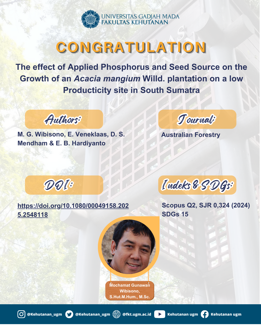The effect of Applied Phosphorus and Seed Source on the Growth of an Acacia mangium Willd. plantation on a low Producticity site in South Sumatra