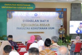 Fakultas Kehutanan UGM menyelenggarakan kegiatan Syawalan pada Selasa, 31 Maret 2026 pada pukul 09.30 – 12.00 WIB, bertempat di Selasar Gedung IFFLC. Acara syawalan diikuti oleh seluruh keluarga besar Fakultas Kehutanan UGM, yakni dosen, tenaga kependidikan, purna karya, anggota Dharma Wanita, tenaga alih daya, serta perwakilan mahasiswa. Turut hadir pula beberapa mitra dari Fakultas Kehutanan UGM. Kegiatan ini berlangsung dalam suasana hangat dan penuh kebersamaan, sebagai bagian dari